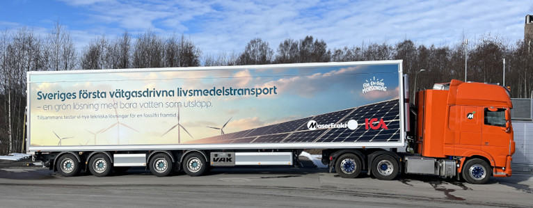 För att accelerera arbetet mot fossilfria transporter är ICA bland de första företagen både i Sverige och globalt att utforska vätgasens potential för tunga godstransporter i praktiken och inleder nu transporter med en vätgasdriven lastbil i samarbete med transportbolaget MaserFrakt. Lastbilen kommer att leverera varor mellan ICAs lager och till ICA-butiker i Dalarna, Västmanland och Gävleborg.